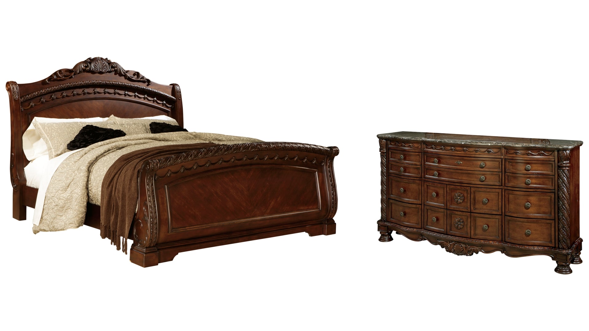 Lakeleigh King Panel Bed with Upholstered Bench with Dresser