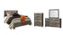 Cazenfeld Queen Panel Bed with Mirrored Dresser and Chest As much as you love escaping to the country, you’re equally drawn to the city. No wonder this bedroom set fits you so well. Sporting an easy-on-the-eyes finish inspired by weathered barn wood, it's sure to please with an uptown look and a down-to-earth sensibility. Open slat headboard with rivet accents gives the urban pastoral aesthetic an added punch of character.Includes panel bed (with headboard, footboard and rails), 6-drawer dresser with mirror and 5-drawer chestMade of engineered wood (MDF/particleboard) and decorative laminateRustic warm gray finish over replicated oak grain Dresser and chest frames accented with dark charcoal finish over replicated oak grainMetal drawer pulls and posts in a dark gunmetal finishDresser and chest with smooth-gliding drawers lined with faux linen laminate for a finished lookMirror attaches to back of dresserFoundation/box spring required, sold separately; mattress available, sold separatelySafety is a top priority, clothing storage units are designed to meet the most current standard for stability, ASTM F 2057 (ASTM International)Drawers extend out to accommodate maximum access to drawer interior while maintaining safetyAssembly requiredFive Drawer Chest As much as you love escaping to the country, you’re equally drawn to the city. No wonder this chest of drawers fits you so well. Sporting an easy-on-the-eyes finish inspired by weathered barn wood, this chest of drawers is sure to please with an uptown look and a down-to-earth sensibility. Flush-mount drawers, sleek pulls and contrasting side posts richly enhance the urbane pastoral aesthetic.Made of engineered wood (MDF/particleboard) and decorative laminateRustic warm gray finish over replicated oak grainFrame accented with dark charcoal finish over replicated oak grainMetal drawer pulls in a dark gunmetal finish5 smooth-gliding drawers lined with faux linen laminate for a finished lookSafety is a top priority, clothing storage units are designed to meet the most current standard for stability, ASTM F 2057 (ASTM International)Drawers extend out to accommodate maximum access to drawer interior while maintaining safetyAssembly requiredDresser and Mirror As much as you love escaping to the country, you’re equally drawn to the city. No wonder this dresser and mirror set fits you so well. Sporting an easy-on-the-eyes finish inspired by weathered barn wood, this sleeping beauty is sure to please with an uptown look and a down-to-earth sensibility. Flush-mount drawers, sleek pulls and metal side posts richly enhance the urbane pastoral aesthetic.Includes dresser with mirrorMade of engineered wood (MDF/particleboard) and decorative laminateRustic warm gray finish over replicated oak grainFrame accented with dark charcoal finish over replicated oak grain6 smooth-gliding drawers lined with faux linen laminate for a finished lookMetal drawer pulls and posts in a dark gunmetal finishMirror attaches to back of dresserSafety is a top priority, clothing storage units are designed to meet the most current standard for stability, ASTM F 2057 (ASTM International)Drawers extend out to accommodate maximum access to drawer interior while maintaining safetyAssembly requiredQueen Panel Bed As much as you love escaping to the country, you’re equally drawn to the city. No wonder this queen panel bed fits you so well. Sporting an easy-on-the-eyes finish inspired by weathered barn wood, Cazenfeld is sure to please with an uptown look and a down-to-earth sensibility. Open slat headboard with rivet accents gives the urbane pastoral aesthetic an added punch of character. Mattress and box spring available, sold separately.Includes headboard, footboard and railsMade of engineered wood (MDF/particleboard) and decorative laminateRustic warm gray finish over replicated oak grainMetal rivet accents in dark gunmetal finishFoundation/box spring required, sold separatelyMattress available, sold separatelyAssembly required