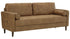 Looks can be deceiving, and sometimes that's a good thing. This caramel-colored faux leather sofa has the appearance of leather without the high price tag. The fun-sized piece has a streamlined design that fits easily in smaller living spaces. Roll-shaped bolster pillows provide comfort, while narrow track arms and peg legs add a clean, contemporary look. Convenient dual USB port keeps devices close at hand and ready for use.