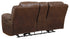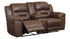 For those that love the cool look of leather but long for the warm feel of fabric, this reclining loveseat with console delivers both with ease. Its high-performance padded faux leather is remarkably durable and easy to clean, just the thing for family spaces. Channel-stitched back cushions provide indulgent lumbar support for maximum comfort—not to mention fashion-forward flair.Dual-sided reclinerCorner-blocked frame with metal reinforced seatsTab pull reclining motionAttached cushionsHigh-resiliency foam cushions wrapped in thick poly fiberPolyester/polyurethane (faux leather) upholsteryCenter console with storage and 2 cup holders