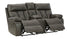This reclining loveseat with console lets you share the most popular seat in the house with anyone you choose. Made of quality faux leather, its look and feel are rich yet affordable. Fashion-forward jumbo stitching adds the finishing touch to a handsome piece that is just waiting for some of your time.Dual-sided reclinerPull tab reclining motionCorner-blocked frame with metal reinforced seatAttached cushionsHigh-resiliency foam cushions wrapped in thick poly fiberPolyester/polyurethane (faux leather) upholsteryCenter console with 2 cup holders and hidden storage